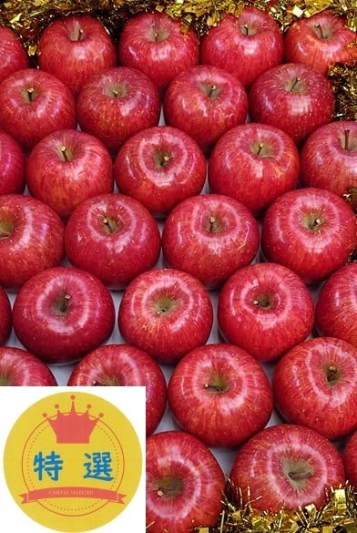 「欠点のほとんどない大玉のりんご。普通品用に選別された原箱の中から、更に厳選して選別されます。出荷等級的には1~2番手のりんごです。玉サイズは、1段当り16~12個程度の大きさ(生態が遅れた年は18個程度も含む)のもの」となります。