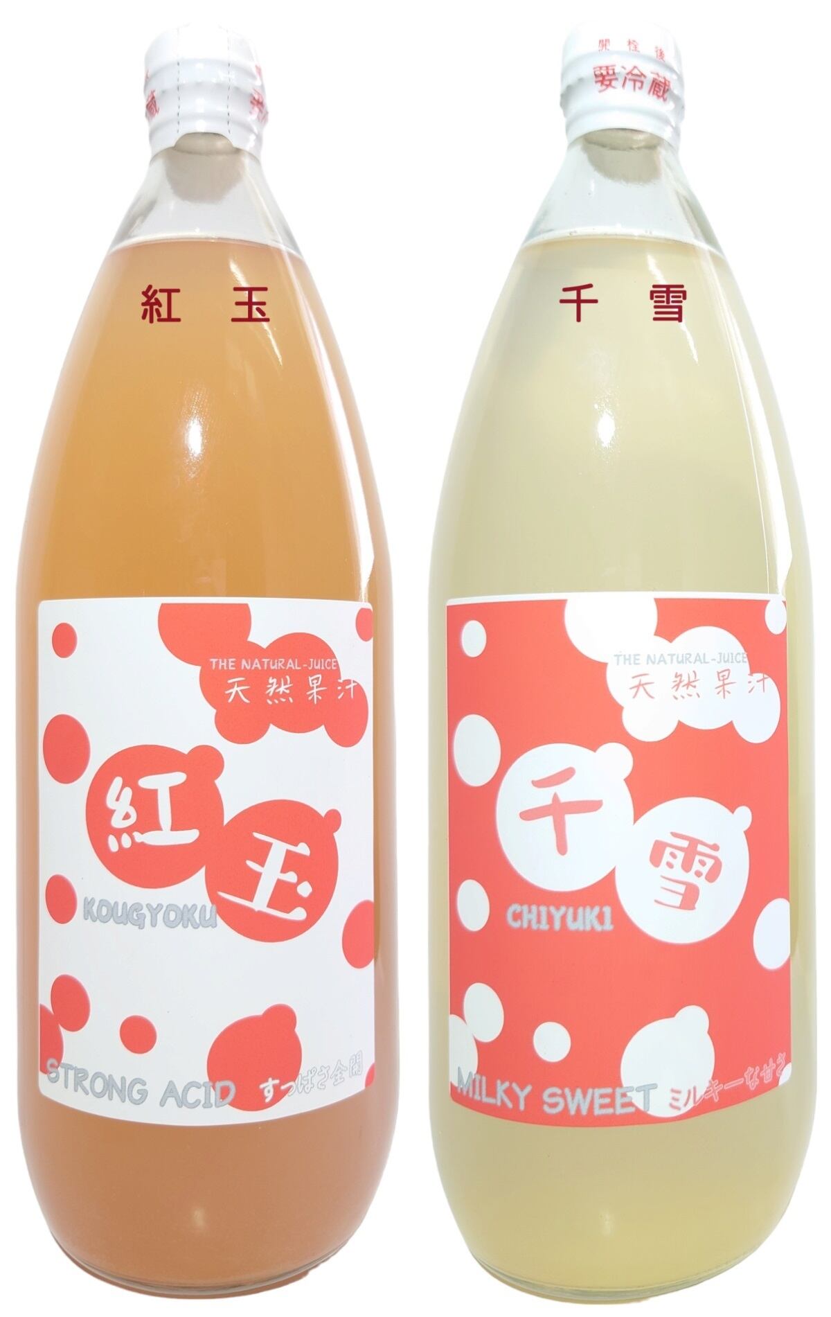 当社のりんごジュースは毎年、その年に収穫され、完熟して生食用に向くものを近隣の加工業者に委託して搾汁しております。もともと生食に向く完熟りんごを使用しているため、自然の風味、りんごそのものを食べてるかのような味わいでお楽しみいただけます。